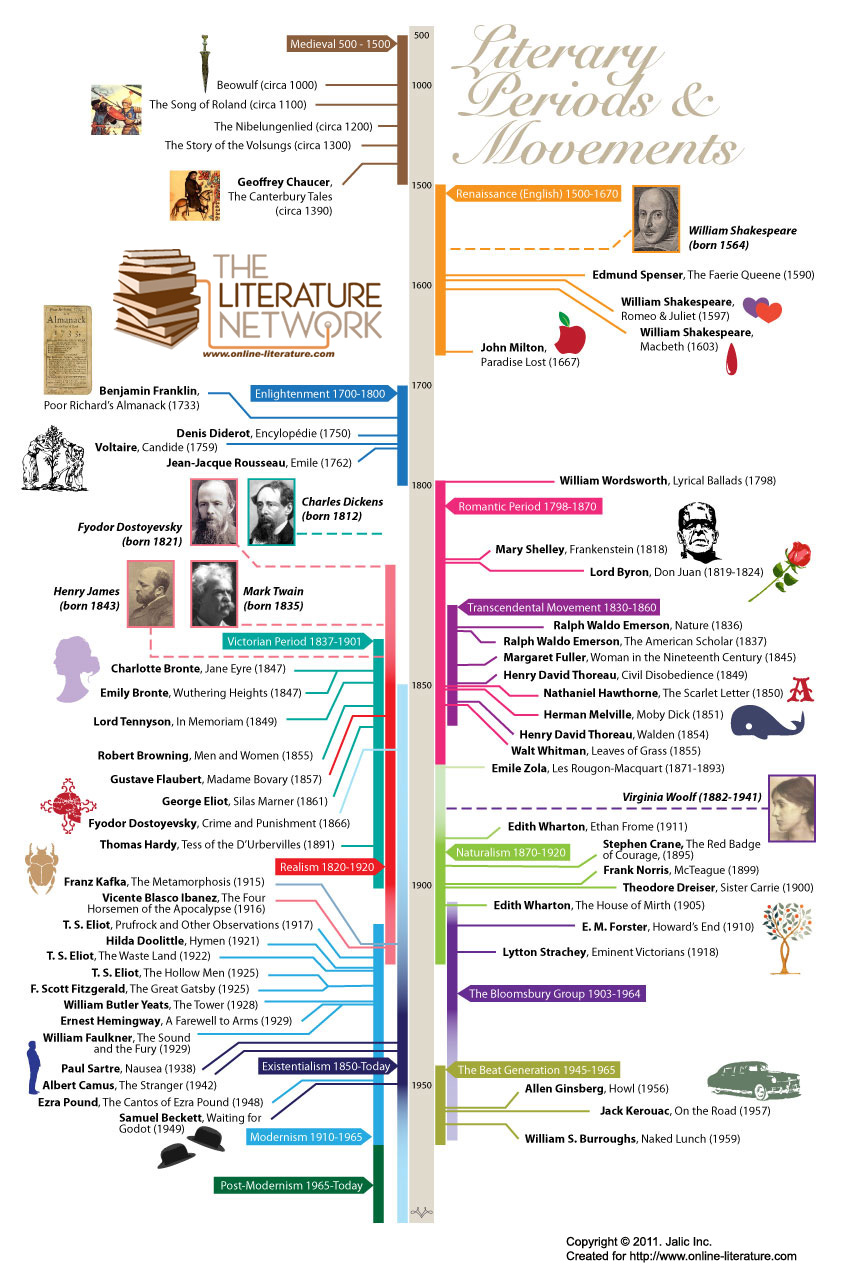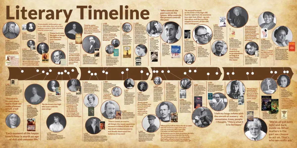 Infografika ma przedstawiać poziomą oś czasu z płynnymi (cyklicznymi?) przejściami kolorów między epokami, od antyku po współczesność. Nad osią umieszczone będą symbole i ikony przedstawiające dominujące motywy kulturowe i literackie w danej epoce. Stopniowe zmiany kolorów, linii i form zwizualizują proces ewolucji mentalności i światopoglądu ludzi. Dzięki temu można będzie śledzić, jak idee i style rozwijały się w sposób ciągły, bez nagłych „zerwań” między epokami.